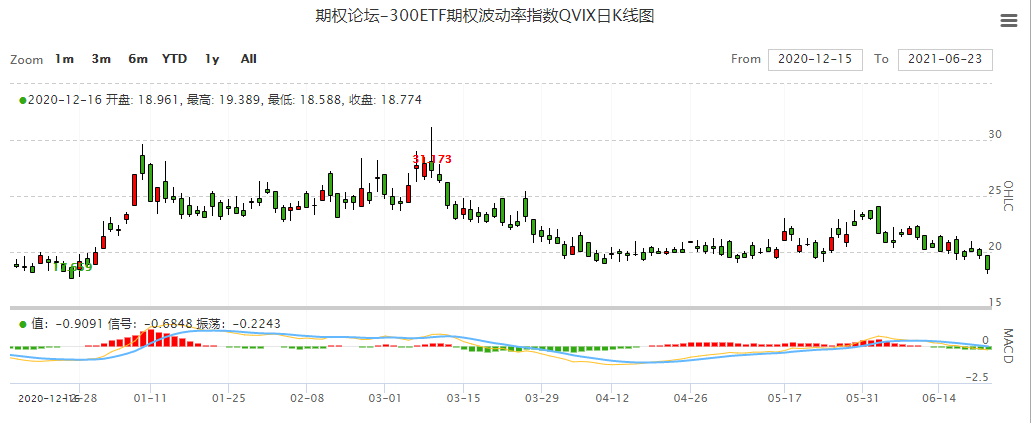 这是来自期权论坛上的300VIX图,最后一天就是今天,如果数据没错,那么表明波动率也没有发生异常。