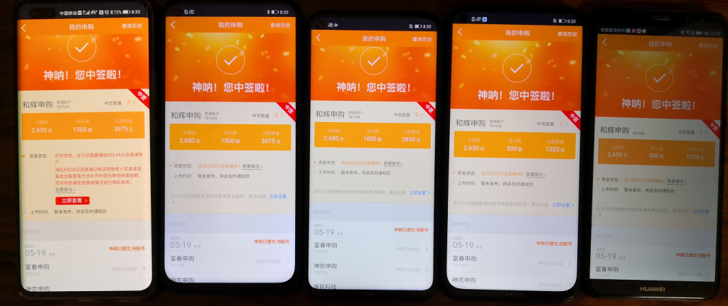 0520:第7-16签,和辉光电,中10签。收益约10000元已结算