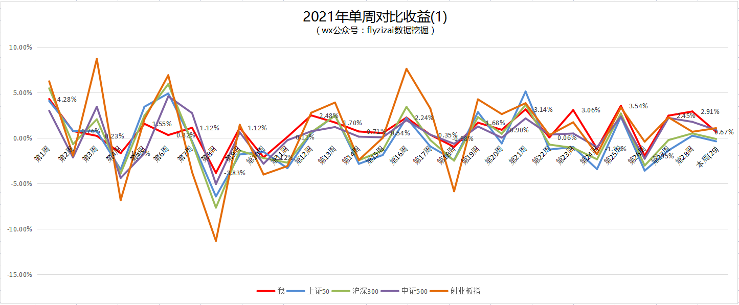 本年对标指数中证500本周涨幅为0.88%,我跑输了,这是无论如何都没有想到的,真是戏剧化,小仓啊,回拉了0.57%个百分点。
