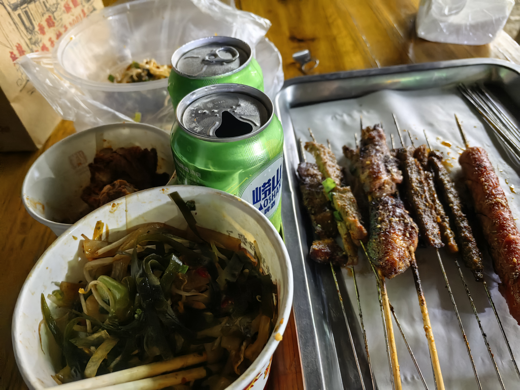 晚上请他们在昨天吃的那里吃虾吃烧烤,点了一满桌菜来表示我的热情。结果中途争吵了起来,甚至一度有打架的趋势。
