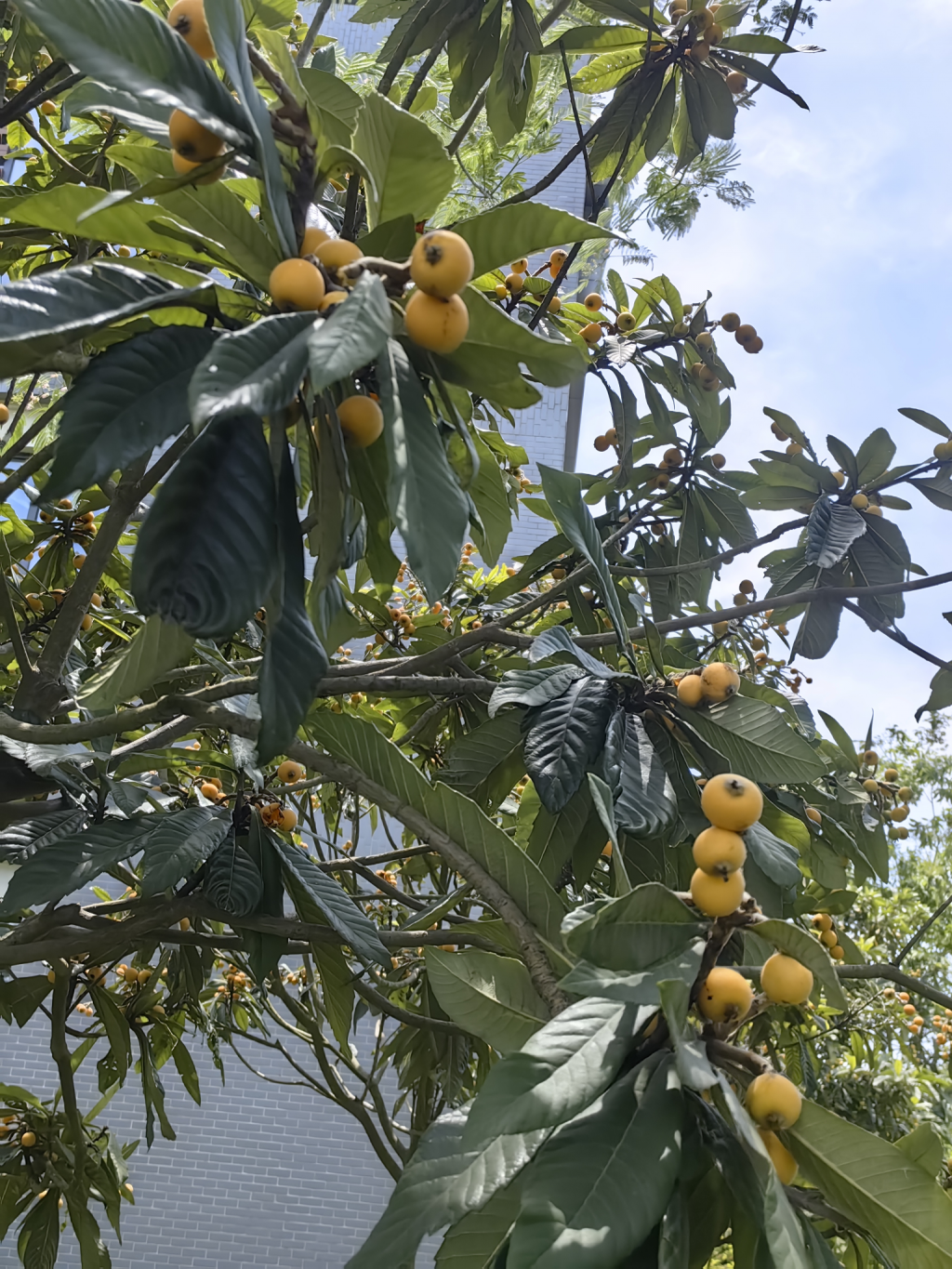 住宿楼下的枇杷树都挂满了果子,都熟了,摘了几颗尝了一下,酸甜酸甜的。