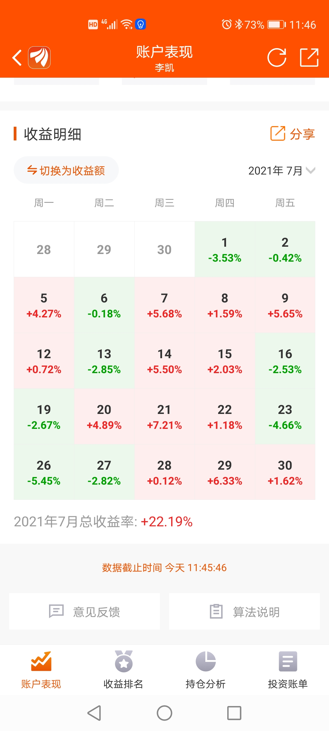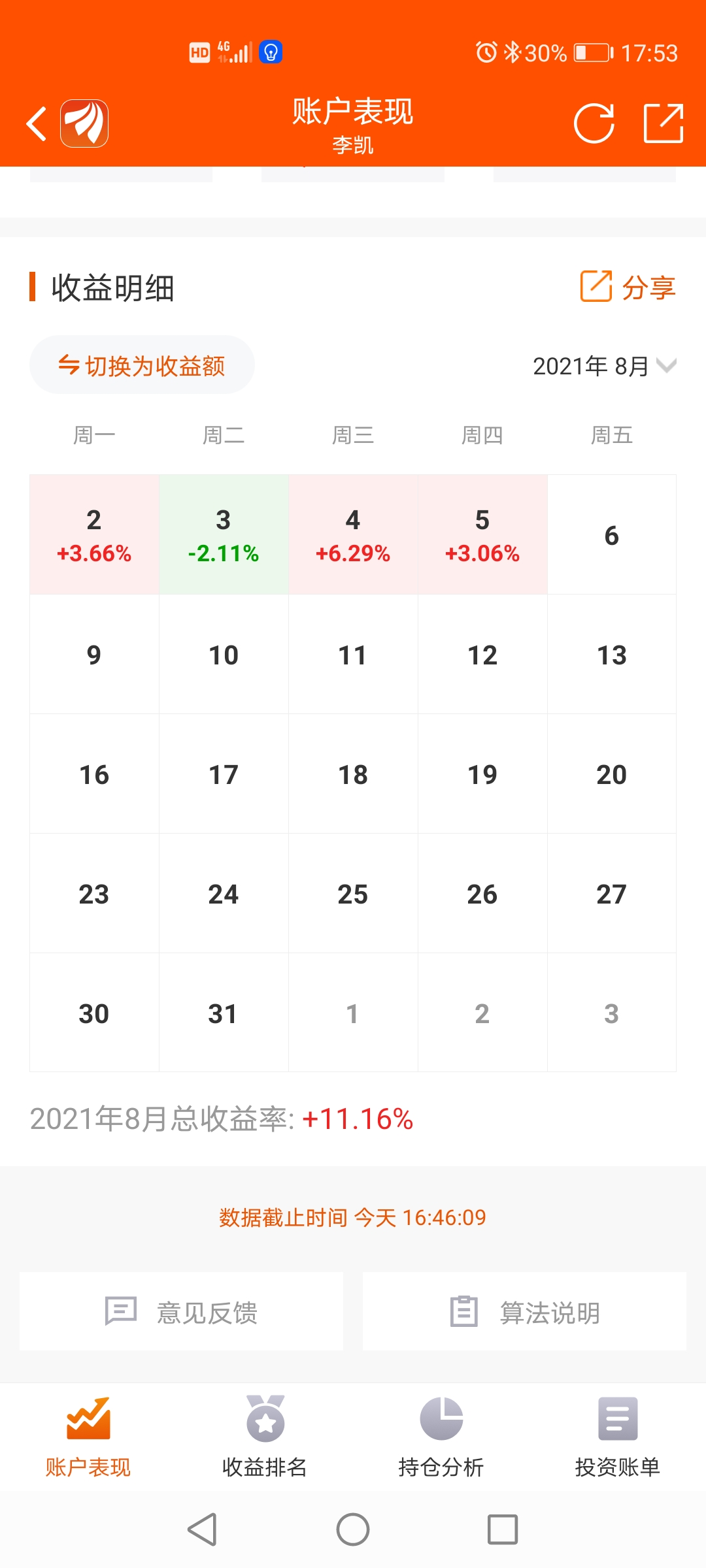帐户防守时很历害,涨时有点跟不上,仓位还是弱了,要再调整。