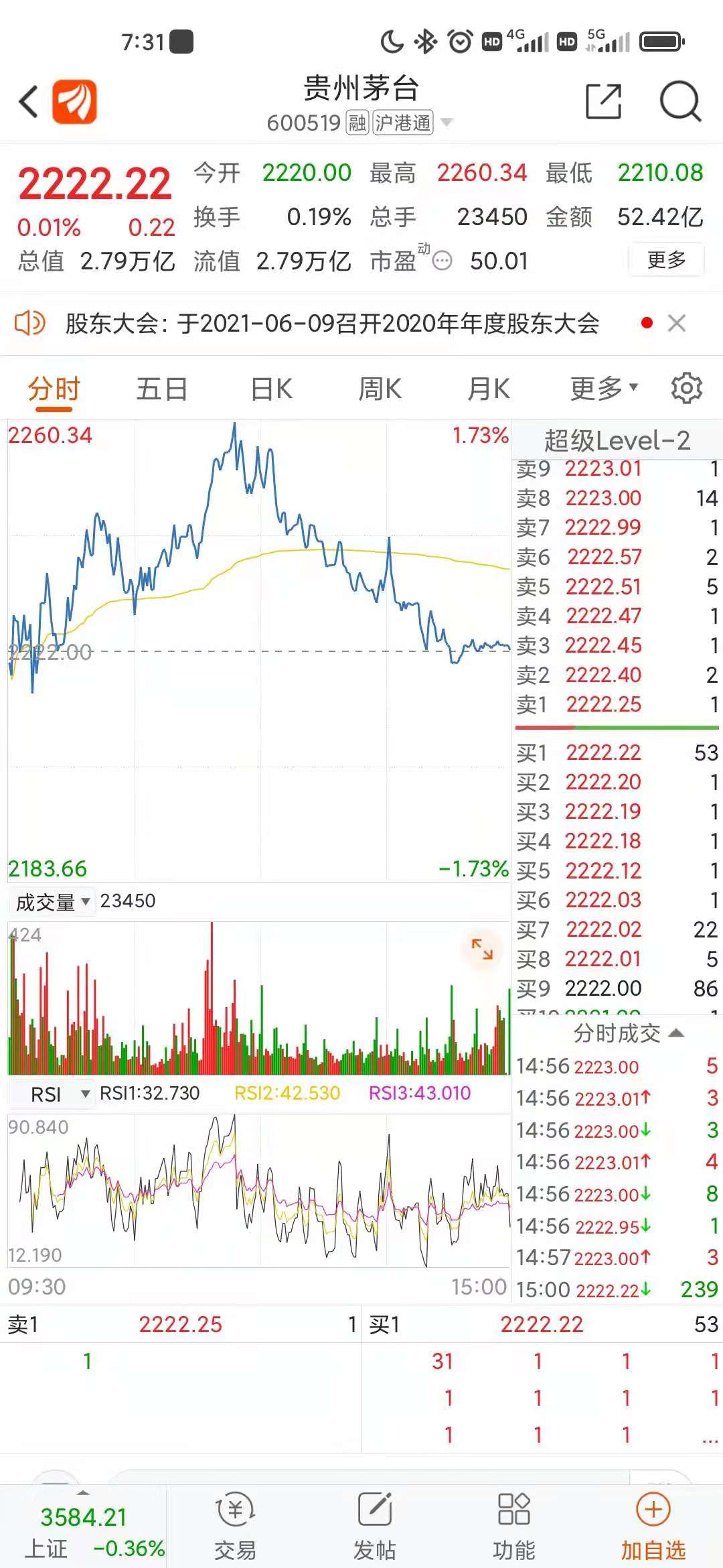 周四的时候茅台收盘是2222.22元,或许我们都活在楚门的世界,抑或是主力对所有看空白酒的股民的讥笑。