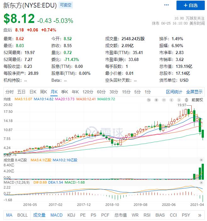 新东方、好未来这两家企业很优秀,市场空间很大,需求也有,增速很快,高估值,股价一直涨,所以一直是大牛股;但是今年国家出台政策封杀,不让培训了,未来空间没了,所以就腰斩再脚斩。