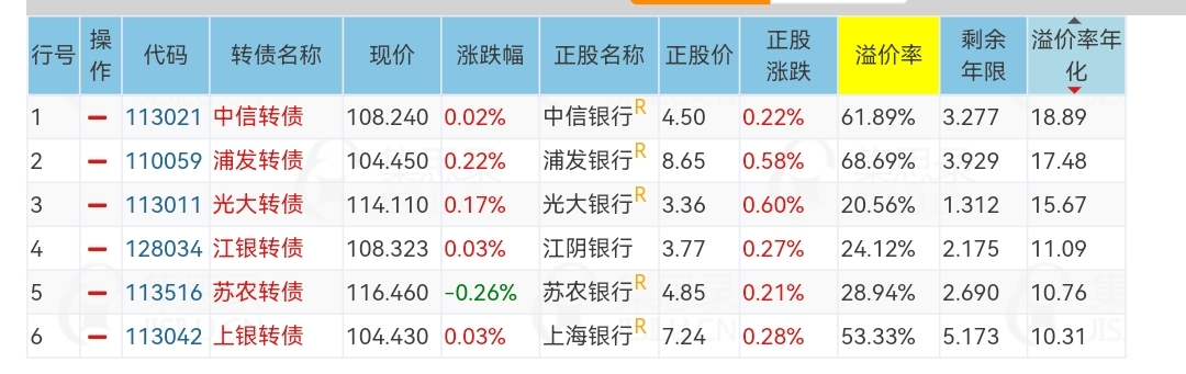 银行转债对应正股的溢价率高,是因为转债价格低,而且信用等级高,大家都认为银行还得起钱。