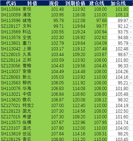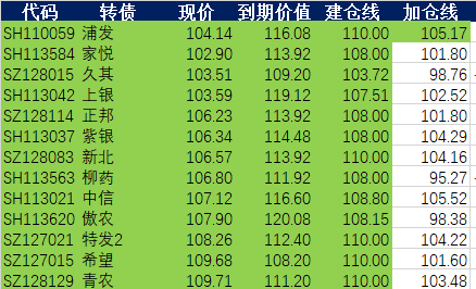增加了三只银行转债,持仓平价溢价率逐步降低,慢慢增加进攻性。