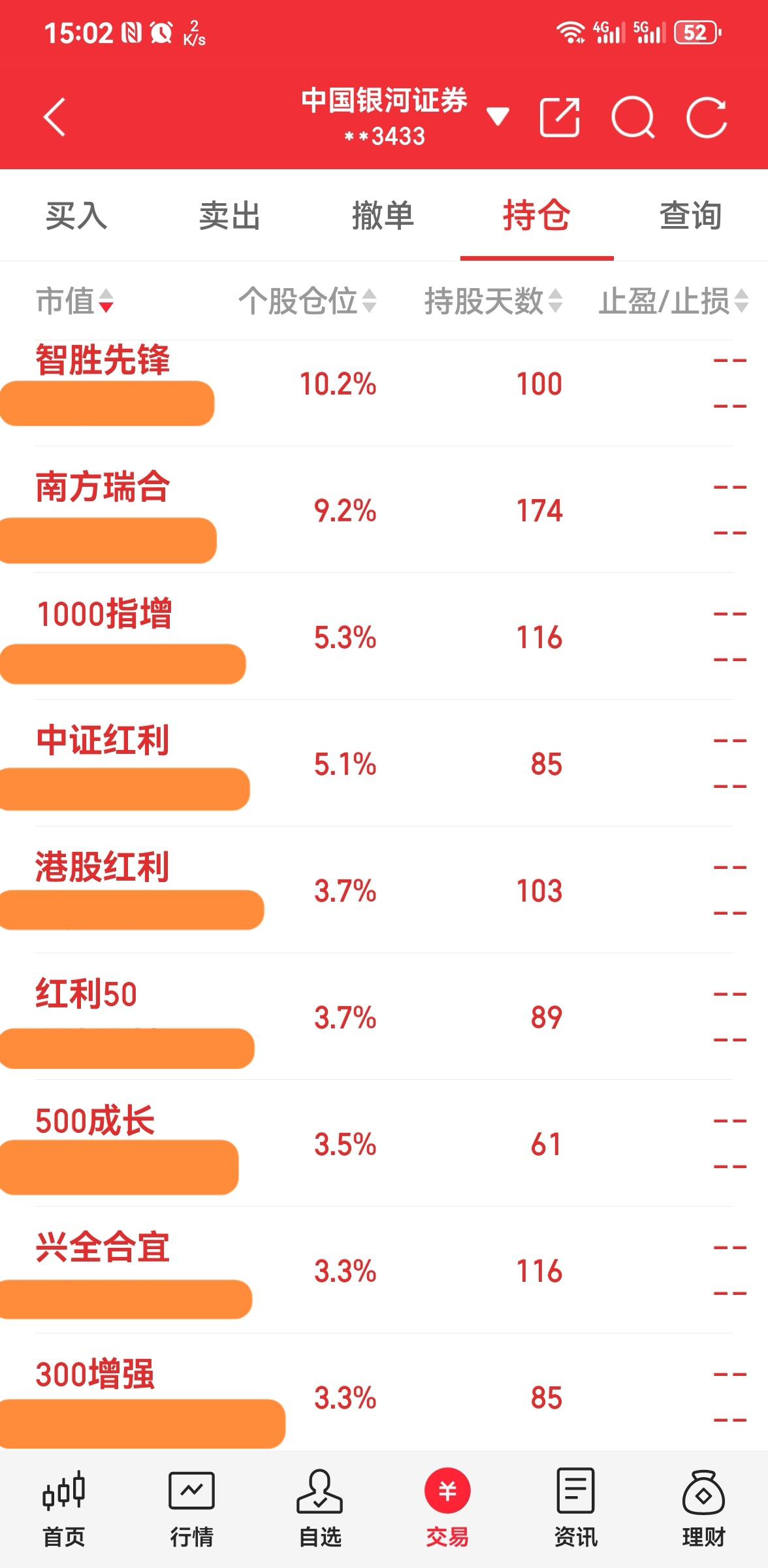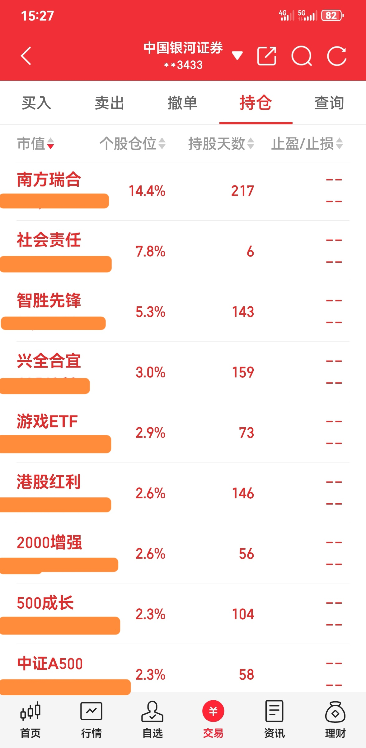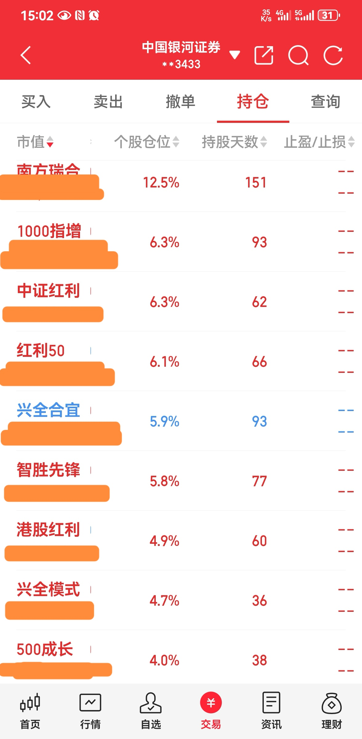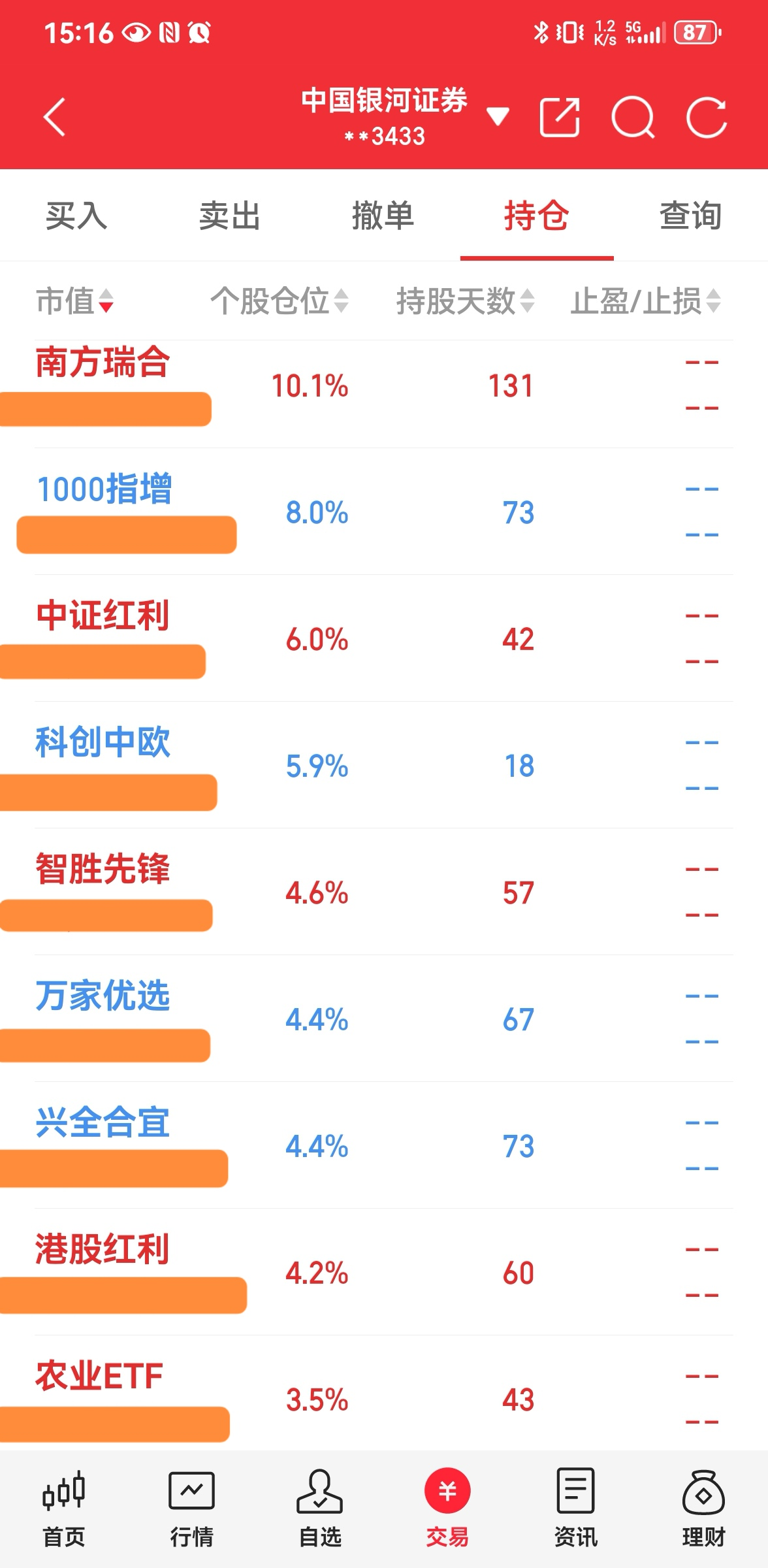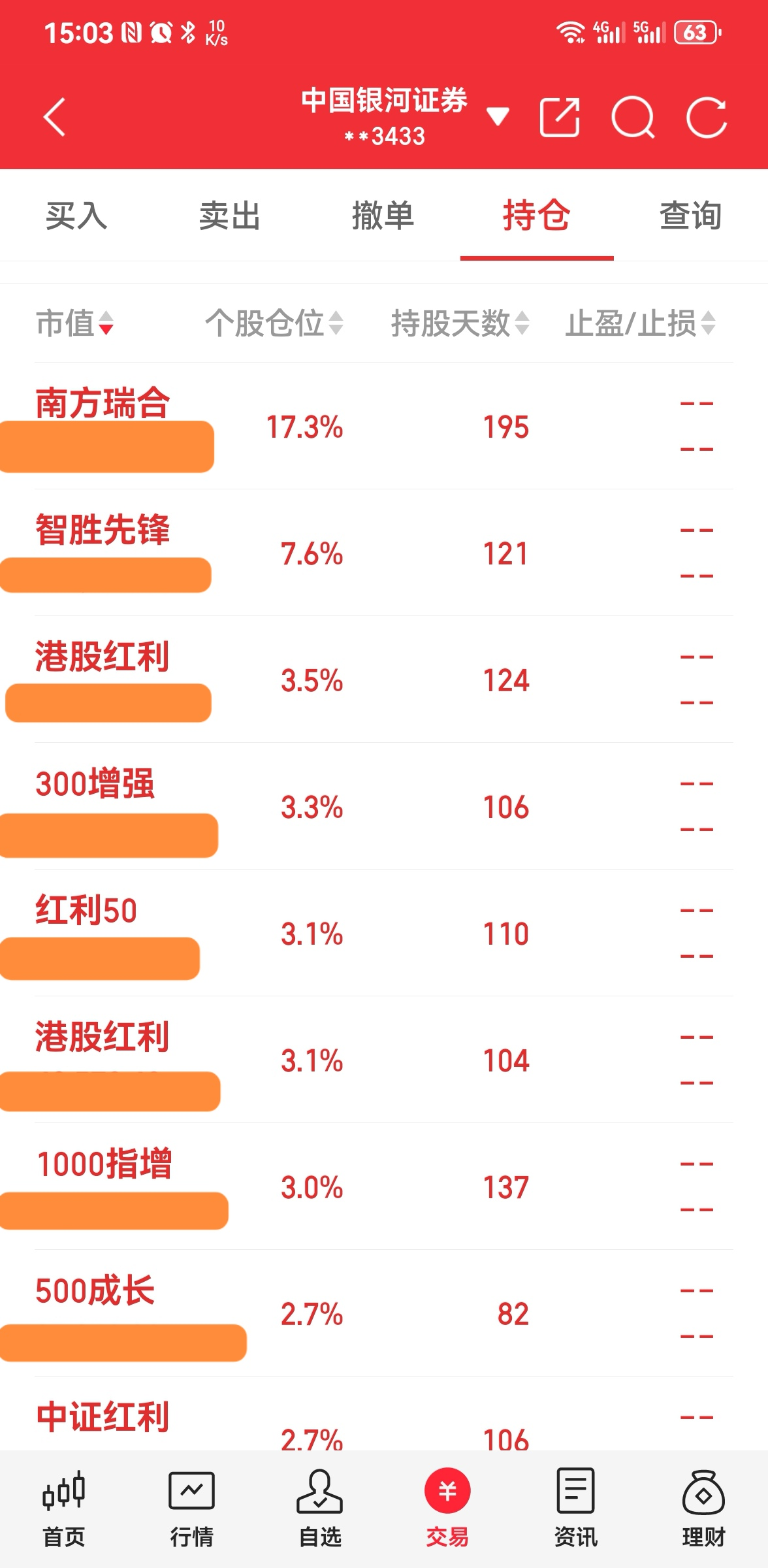 ----3、仓位:钱不过夜满仓君(因为有钱就心神不宁,以前追涨杀跌亏多赢少,所以现在天天满仓操作,这样既不患得患失,心态也更平和);