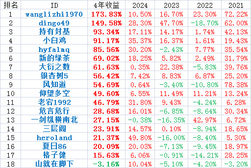格子健 0.99% 3.74% 100% 场内基金大饼----欢迎参与2024年11月格子健投资实盘贴:网友名;本月收益;本年收益 ;中高风险仓位;重仓一名称;重仓二名称;重仓三名称。天天基金中灵活混合型基金本月约为0.4%,本年约为5.0%,本人本月表现一般,本年表现不佳。