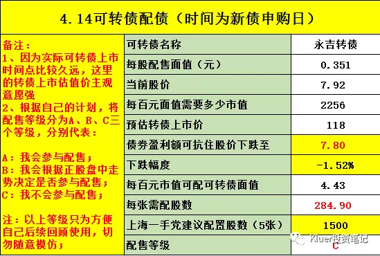 我不打算参与此次配债了(最近配债结束后踩踏太严重,谨慎参与,没有很大的安全垫都不太想参加,等情绪冷点了再进来玩玩)。