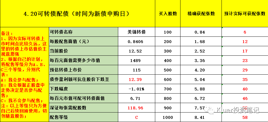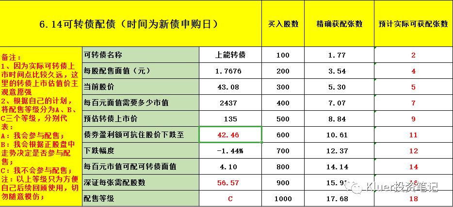 由于小市值股票推动着可转债行情、情绪的高涨,曾经被认为是亏钱的“配债”手艺我觉得性价比越来越高了。所以也打算在这里找找机会,打算之后每一支发行的转债都算一算配债的性价比, 然后参不参与心里好有个底。一同分享给论坛的各位,仅供参考。