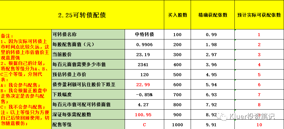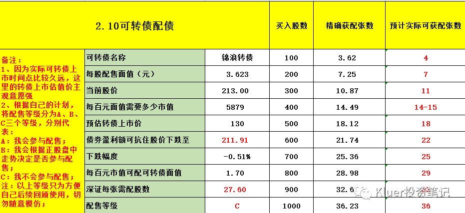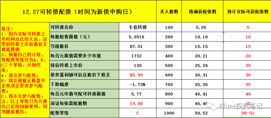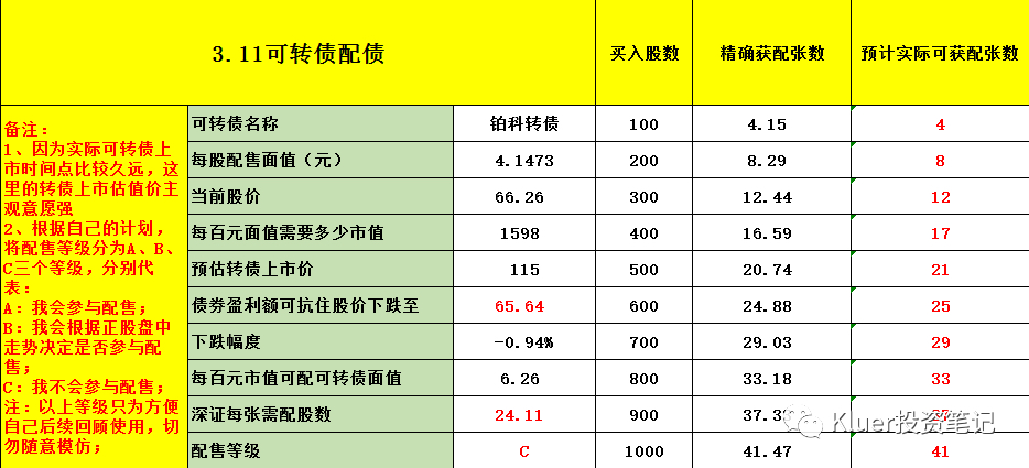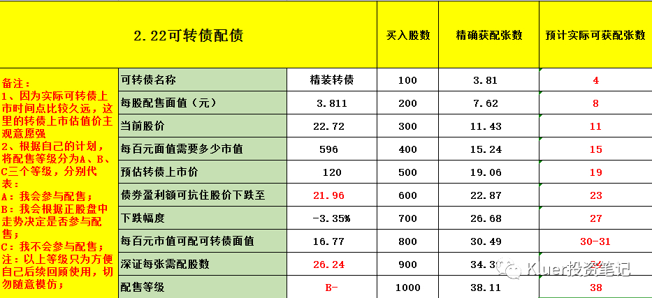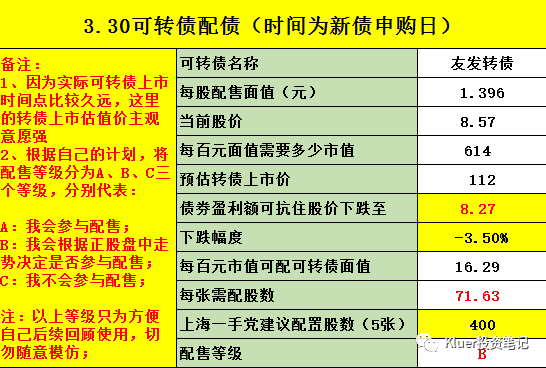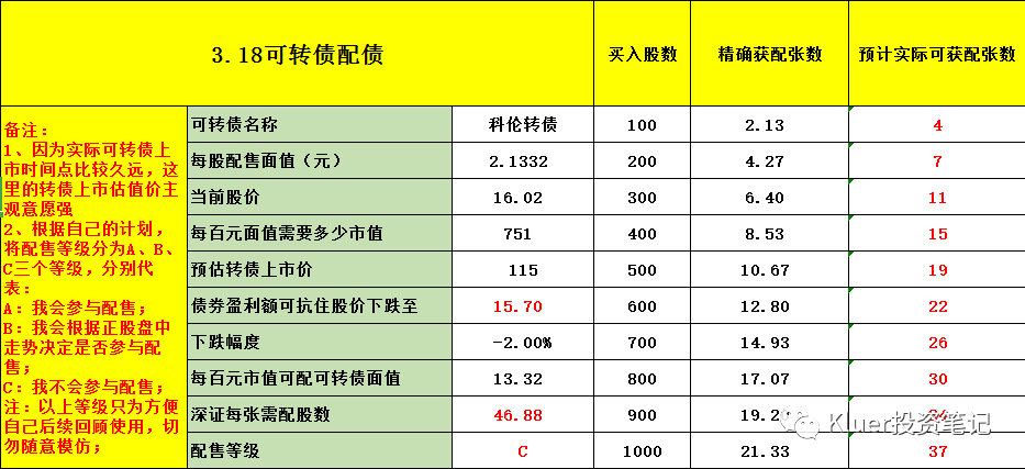 由于小市值股票推动着可转债行情、情绪的高涨,曾经被认为是亏钱的“配债”手艺我觉得性价比越来越高了。所以也打算在这里找找机会,打算之后每一支发行的转债都算一算配债的性价比, 然后参不参与心里好有个底。一同分享给论坛的各位,仅供参考。