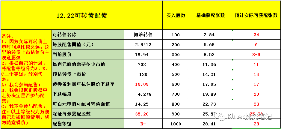 由于小市值股票推动着可转债行情、情绪的高涨,曾经被认为是亏钱的“配债”手艺我觉得性价比越来越高了。所以也打算在这里找找机会,打算之后每一支发行的转债都算一算配债的性价比, 然后参不参与心里好有个底。一同分享给论坛的各位,仅供参考。
