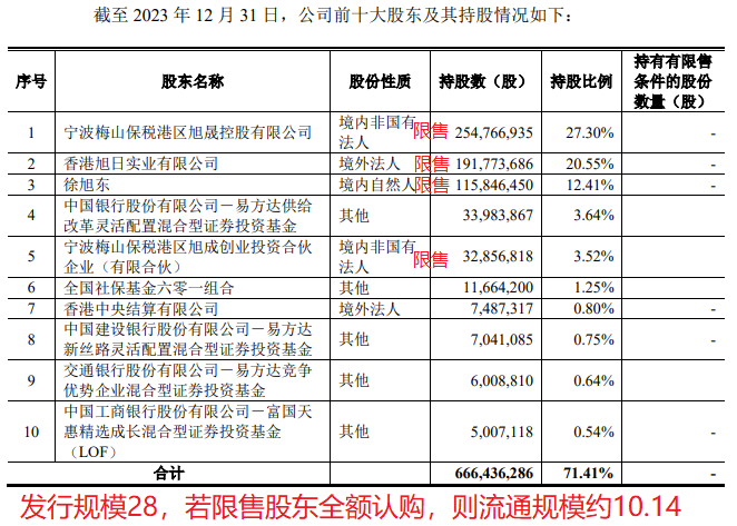 根据截至2023年底持有人前十名情况,漏算和之琪的份额限售。(董监高为执行事务合伙人)