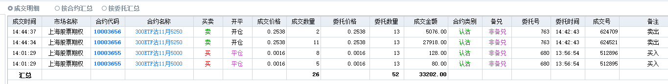 大师恕我愚钝,我研究了半天,我推测你本来开的是卖11张4900购+卖2张4800购+卖13张5000沽,然后因为5000沽下午实值程度太浅就切换成5250沽,这样被行权就可以和卖购直接抵消掉,相较于提前平仓,可以把所有合约的时间价值吃净?