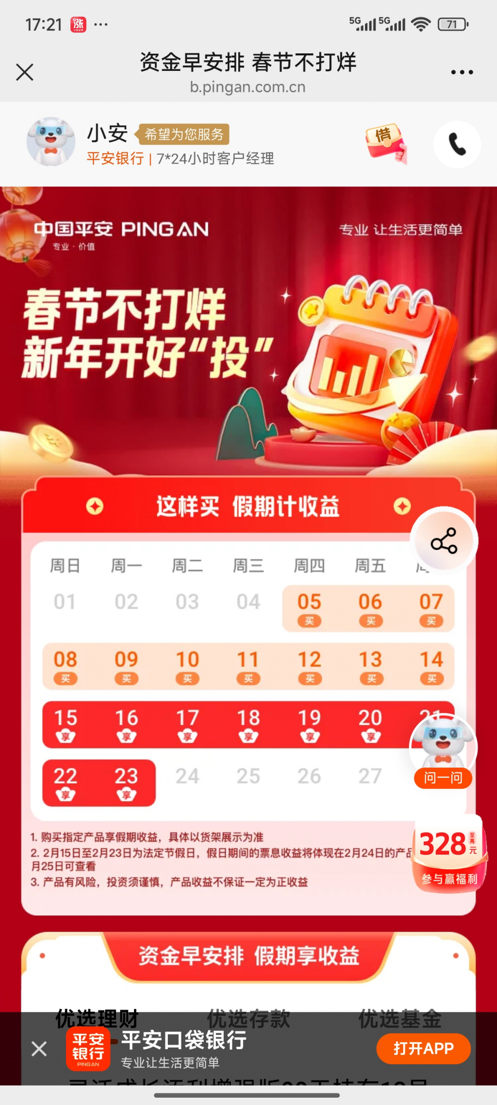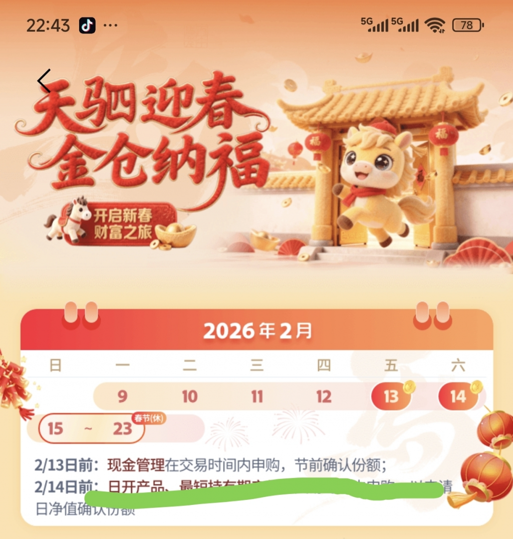 下周一放假中怎么赎回?记得明天周五或后天周六赎回,才能下下周二(24号,初八)到账。周六14日赎回,那利息是计算到周六晚呢,还是23日晚