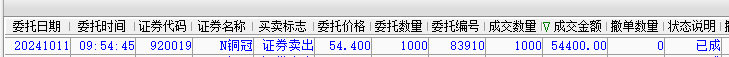 09:44:24 920019 N铜冠 证券卖出 500 500 0 53.300 53.320 :已成