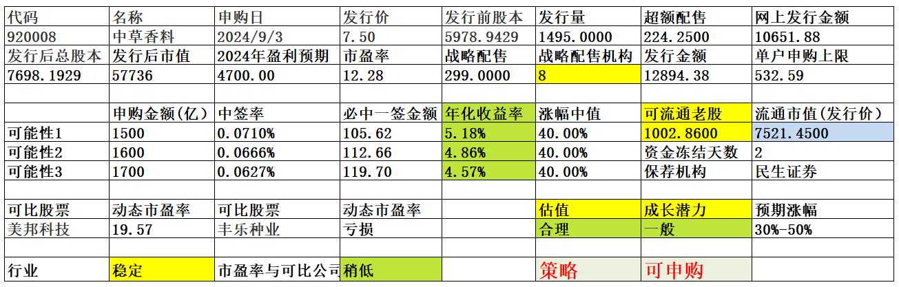 中草香料冻结资金预测1644亿正股门槛约115万,碎股门槛130-140万。相比成电光信,资金增加因素:1、顶格资金增加:100亿2、100-180万账户入场:150亿3、误认为价格低配号多更容易中签散户增加:100亿资金减少因素:1、认为新股质量差,涨幅低,放弃或减少申购:100亿建议如下:优先1+1,保险起见每个账户配150万。次选2+1,保险起见每个账户配240万。例如:300万若平分账户...呵呵,我预测冻结资金不超1600亿,但1+1 150W很可能不够,如果300W不分户稳稳三手,但平分二户很可能得二手,当然也可能四手(风险很大)。我自己选择每户2+1,240多万,加了安全垫。我认为盘中不应该发,怕影响别人的判断。再说有些人恨不得饭喂到嘴里,成天问1+1多少?2+1多少?有多少资金几个帐户怎么分配?如果你预测对了,真是神人神贴,预测错了,恐怕要骂娘。其实就是预测总冻结资金,就能算出一手正股要多少钱,再预测碎股线大概在什么位置,就可以算出1+1,2+1,3+1,,,网上大V预测的很多,自己综合比较一下怎么划算,大脑是个好东西,总归要动动脑筋嘛。