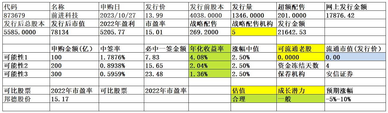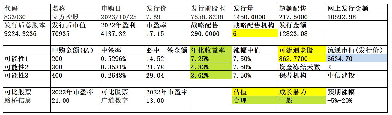 六、结论。公司所处行业较为传统,公司质地普通,发行市盈率与可比公司相比无优势,2023年上半年因原材料价格下跌导致利润增幅较大,无流通老股。谨慎申购。
