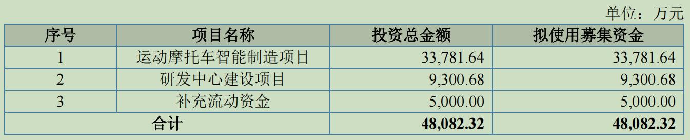 公司一直从事非道路越野车的自主研发、生产和销售,是国内具有较强竞争力的动力运动装备专业制造商之一。公司目前产品主要为 50-300CC 排量的两轮越野摩托车和全地形车产品,主要应用于专业场地及山路林地等场景的运动竞技,郊野、公园、自家庭院等休闲娱乐,以及户外特种作业等多个领域。经过多年技术积累和发展,公司已形成Pit Bike(小越野)、Dirt Bike(大越野)、Mini Gp(小型公路赛车)、ATV(四轮全地形车)及 SSV(肩并肩坐全地形车)五大产品系列,根据不同年龄段、使用场景、客户需求差异合计推出三十余种规格型号,形成了较为丰富的产品体系。同时,公司已开展中大排量车型、UTV 以及电动越野车等领域的研发,将逐步向全品类休闲摩托领域拓展,从而持续注入成长动力。