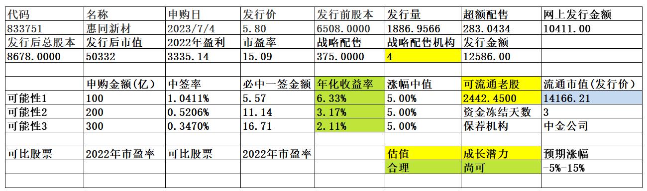 六、结论。公司所处行业稳定发展,公司质地尚可,公司细分行业较为独特,主板、北交所无可比公司,发行市盈率15倍。流通老股稍多。谨慎申购。