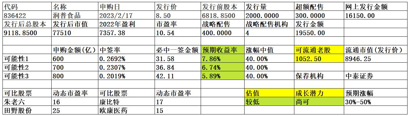 按第一种可能算,315800中100股,发行价8.5,中奖金额850,按最高涨幅算50%,盈利425,该次收益率425/315800=0.134%?
