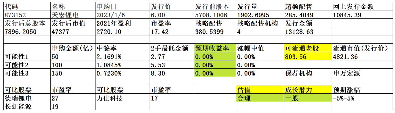 天宏锂电 发1902.6995万股 直接定价 6.00元 市盈率15.03我突然觉得这个比蛋蛋还要香
