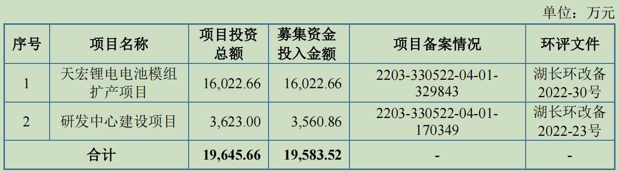天宏锂电 发1902.6995万股 直接定价 6.00元 市盈率15.03