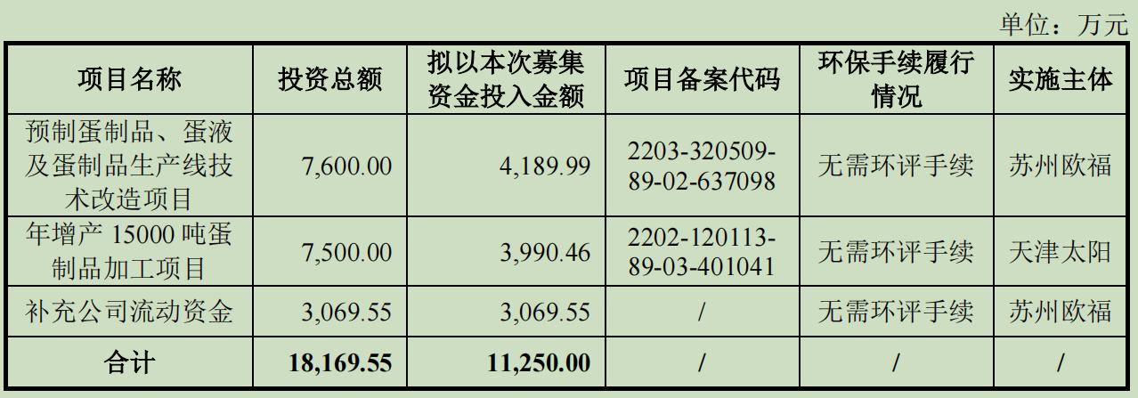 欧福蛋业发行价格为2.5元/股,发行市盈率为23.3倍,丹麦公司China Egg Products ApS持有欧福蛋业87.96%股份