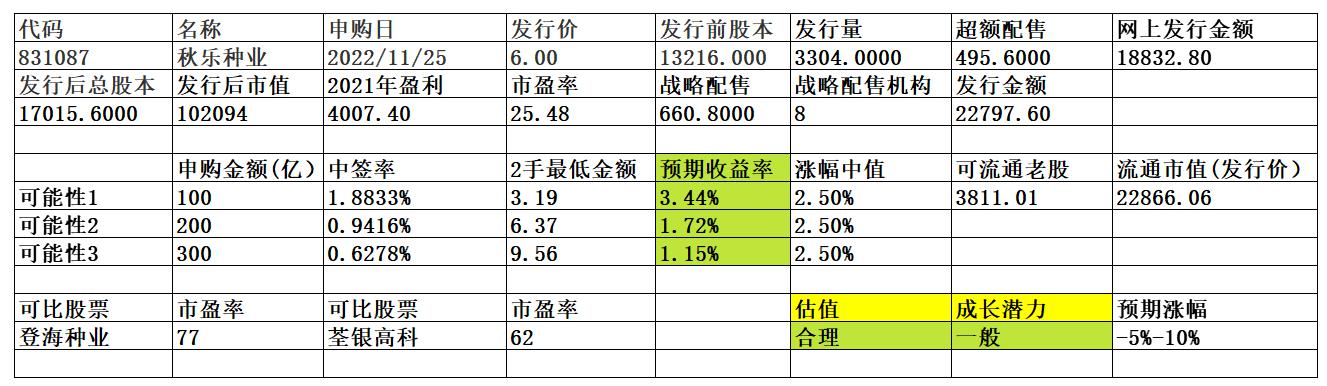 秋乐种业2022年5月定向增发130 万股,发行价格为7.95元/股
