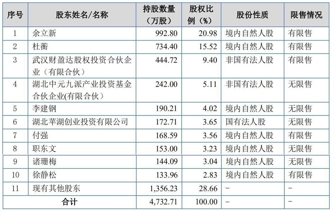 2020年5月,公司向余立新、付强、徐静松、唐莉梅四名自然人实际发行股份 140万股,发行价7.5元。2021年7月,公司10送4转3派2.5元。2021年11月,公司向湖北苹湖创业投资有限公司、湖北中元九派产业投资基金合伙企业(有限合伙)两名认购对象发行414.71万股,发行11.58元。