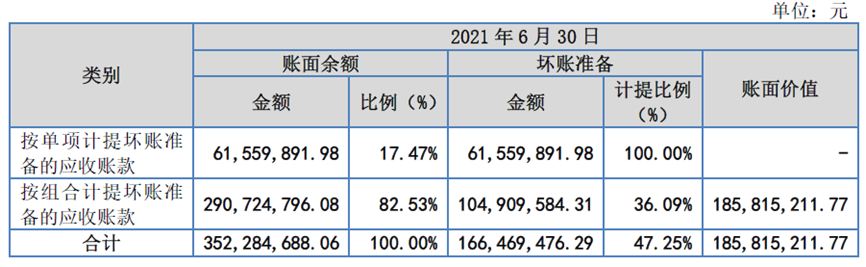 2、 应收账款余额较高。截至2018 年末、2019 年末、2020 年末和2021 年6 月末,公司应收账款账面价值分别为16,246.93 万元、15,831.86 万元、18,637.22 万元和18,581.52 万元,占公司流动资产总额的比例分别为61.35%、62.15%、69.90%和75.11%。报告期内,应收账款的坏账损失计提金额分别为3,499.21 万元、1,953.23 万元、2,017.17 万元和17.53 万元,占当年营业利润的比例为238.85%、53.45%、69.41%和1.71%。截至报告期末5 年以上的应收账款余额为9,560.70 万元,占应收账款总额的27.14%,其中4,970.15 万元已全额计提坏账准备,4,590.54 万元已按预期信用损失率85.85%计提坏账准备。