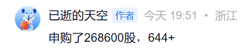 帅牛贴子里的那位中50股碎股的网友,分享了自己的认购数量为268600股,可以直接知道精确的碎股门槛了