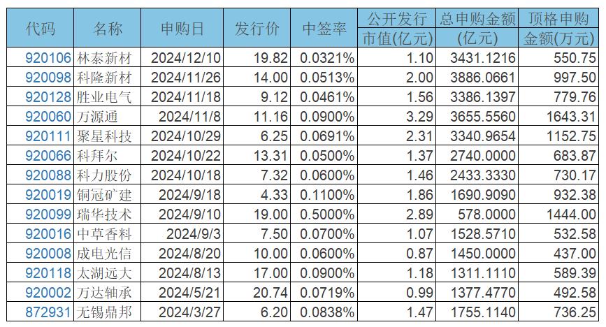 请问有没有统计过,最近几个月北交所新股包中一签的金额有没有试过超过中介给的价格?