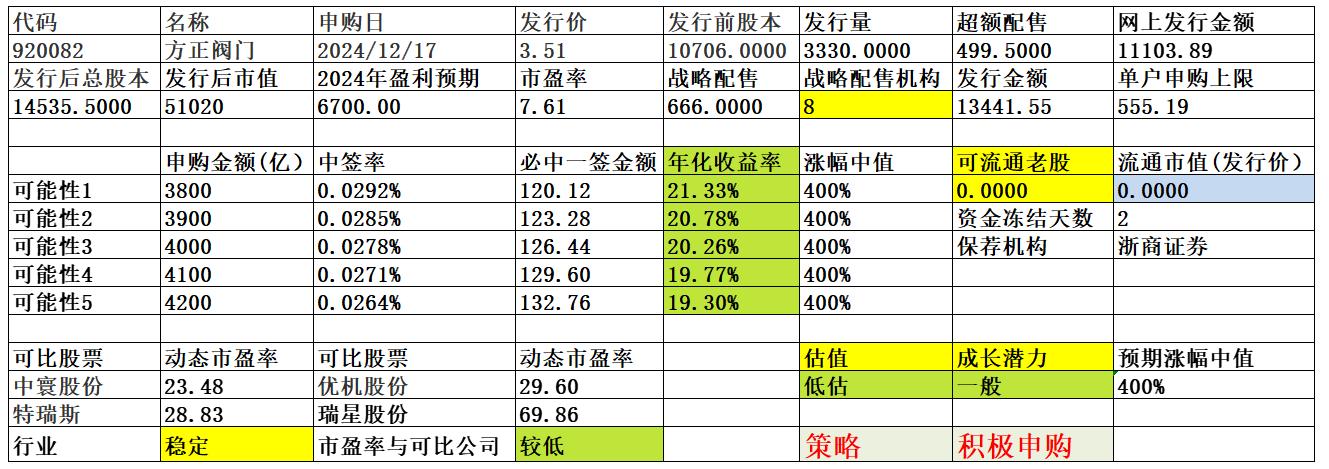 六、结论。公司所处行业稳定发展,公司质地一般,发行市盈率与可比公司折让较大,无流通老股,绝对发行价较低,近期市场新股较为稀缺,炒作热情极高,可积极申购。