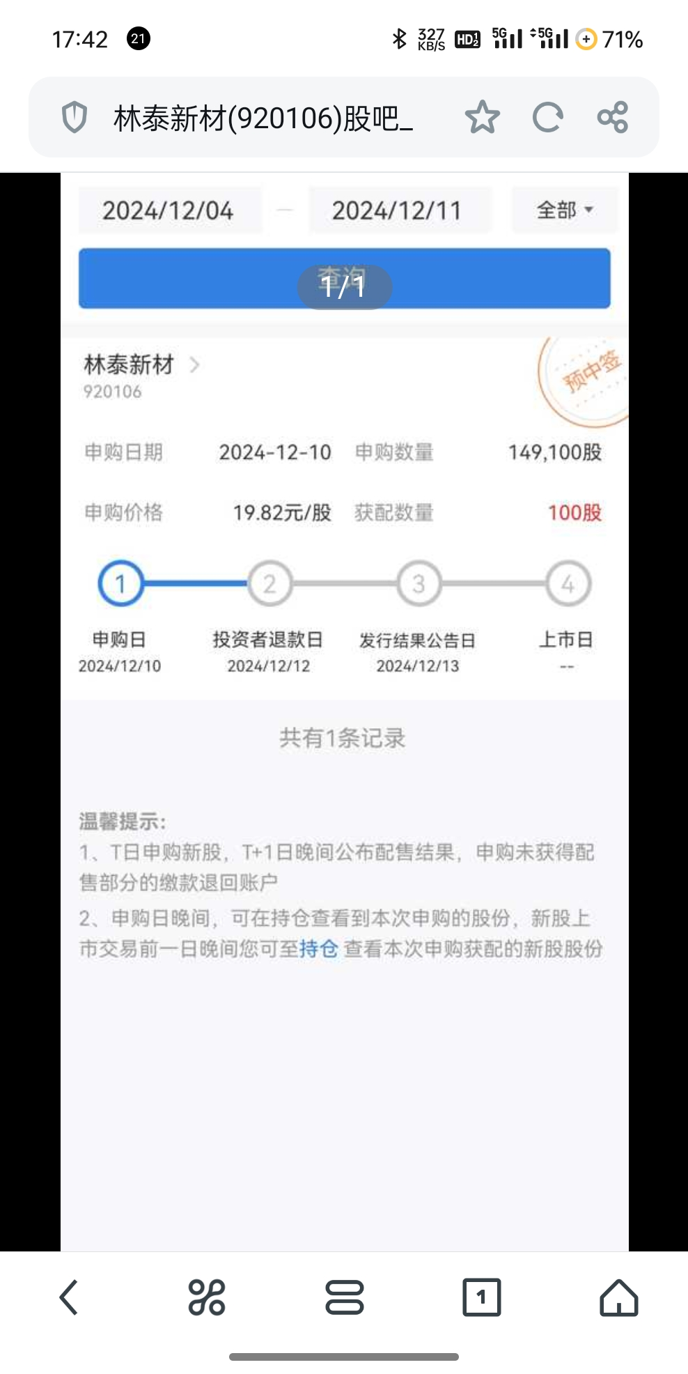 如果今天大盘高开高走,那么申购资金有可能小于3000亿。但很遗憾的是,今天高开低走,大量资金又会撤出来申购北交所,收盘之后可以肯定满格也没有正股了。有一种可能顶格可能中100或者200,碎股拼手速,手速快的可以拿到,其他申购的都没有
