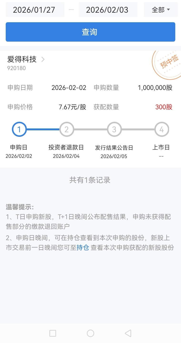 下周一2月2日申购爱得科技