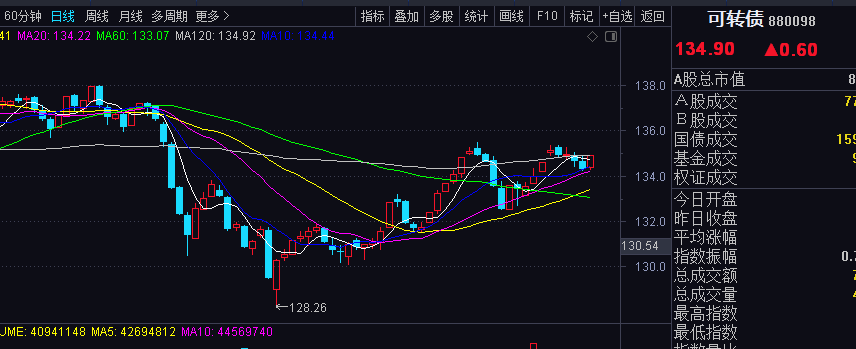 探底回升,技术上指数应该是30分钟反弹,今天看很多转债已经是成交非常稀少了,一手两手,有些小盘转债已经脱离正股个别炒作了,永吉,汇通,科达,说明有一部分资金进转债,股票指数上规避一些风险。市场比较割裂,操作难度确实比较高,笑话就是:池塘周围都是鱼钩,没有鱼了!