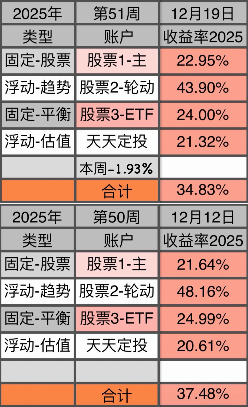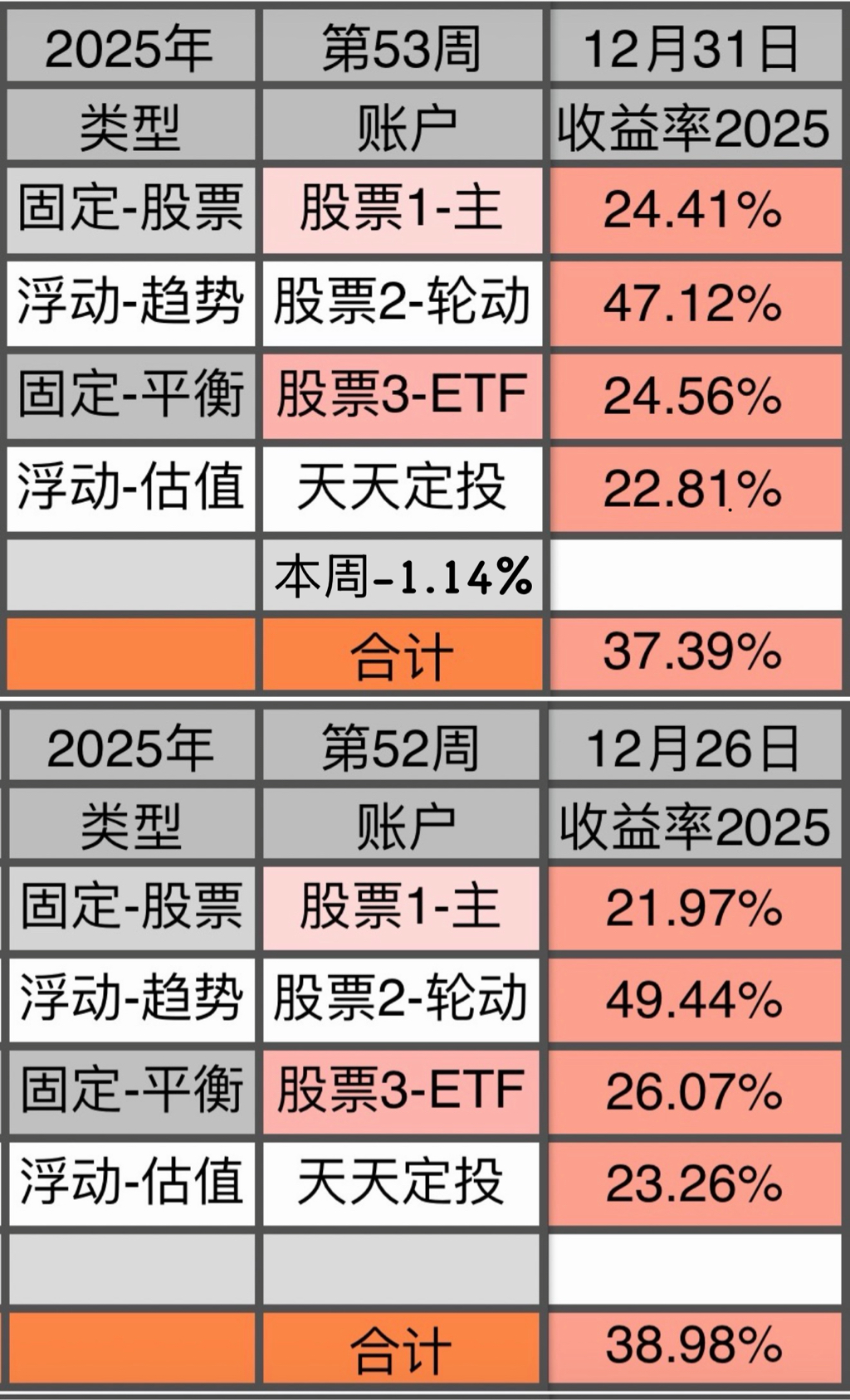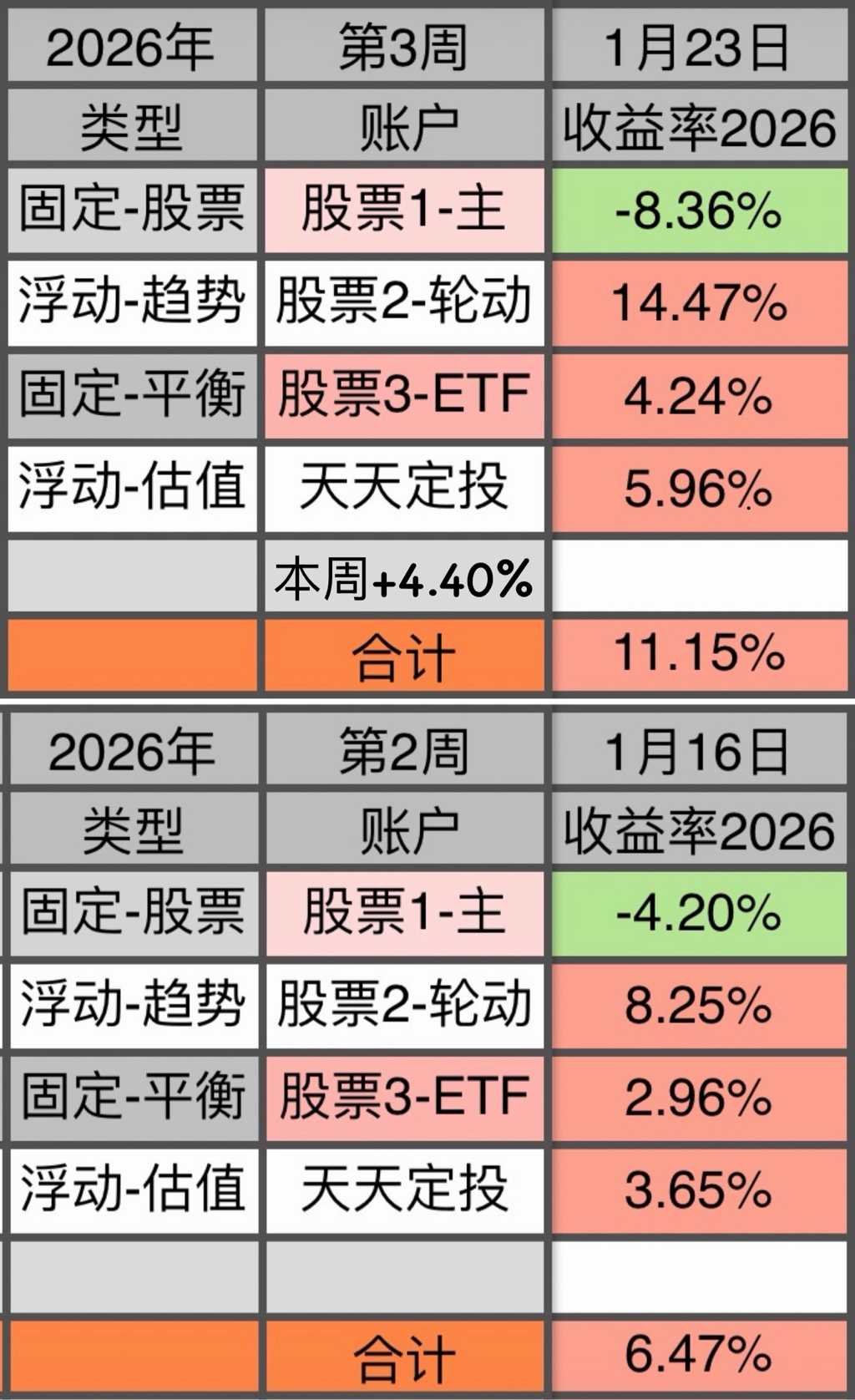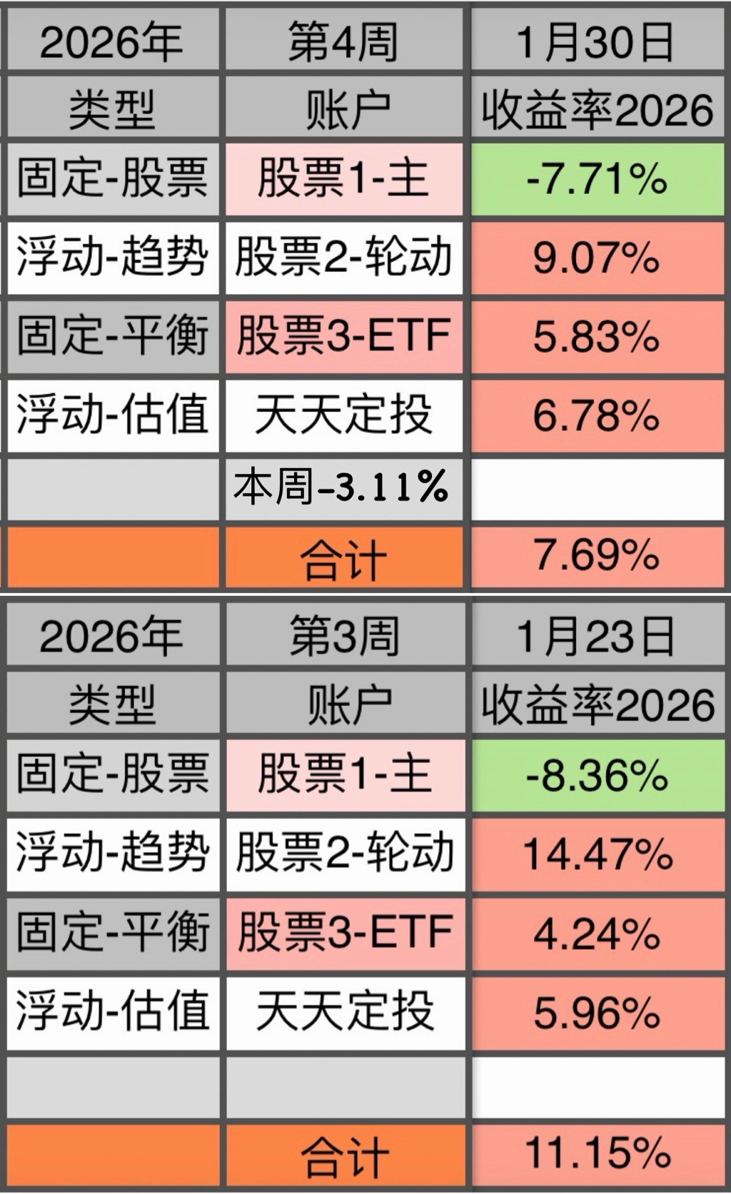 4为场外基金,每周依据数据进行买入/卖出/不动 的操作。