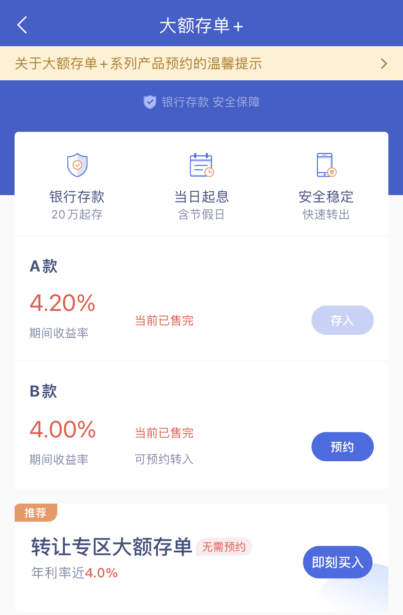 现在的大额存单封顶3.55,那家有4%的??我也再找。
