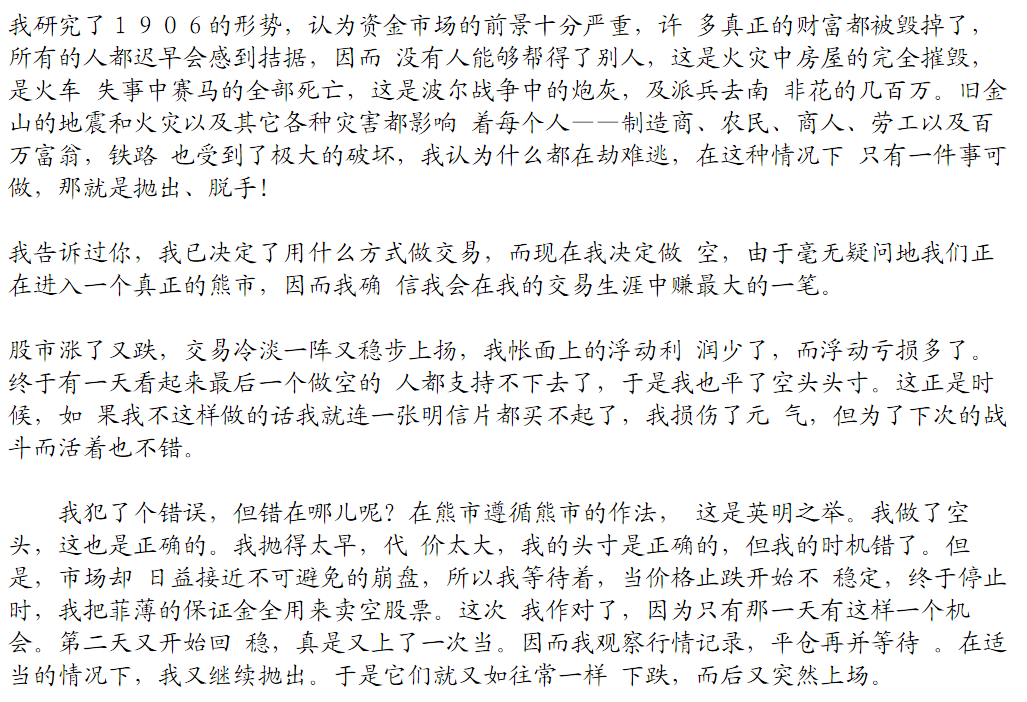 补一段利弗莫尔熊市做空的文字。这次他熊市他做空破产,就是极大的忽视了时间价值。