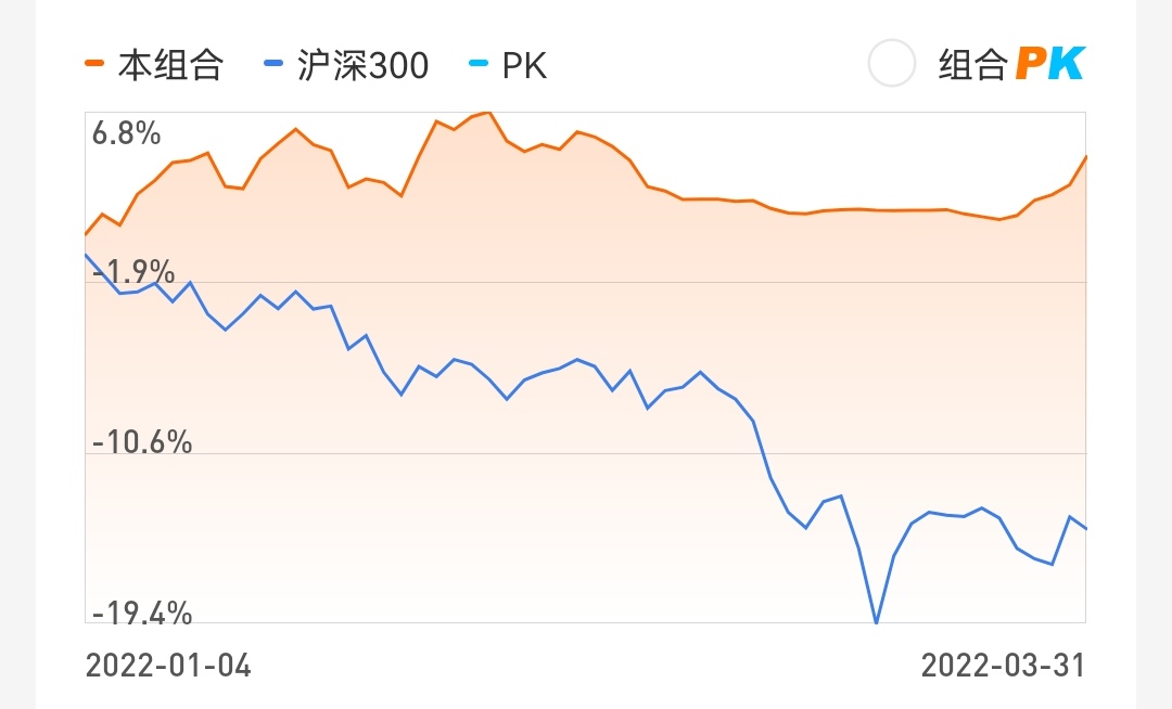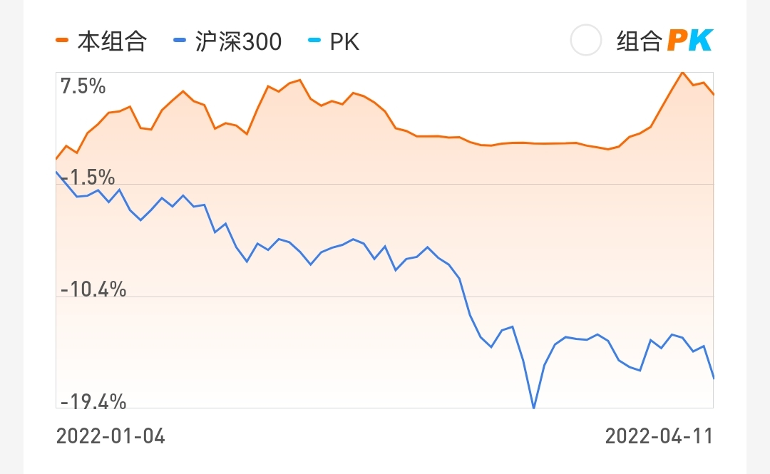 今年沪深300净值0.8547,组合1.0469,领先+19.22%。