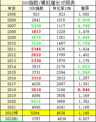 海通证券研究员荀玉根先生发表过研判,考虑300指数历年增长均值回归,2022年可能属于-6%的年份。在年初我本来期待会有春季躁动冲击5250点,后来被现实中的突发因素打乱了。由于通胀和疫情,上半年经济数据会很差劲,下半年能否保证5.5%需要面对更多压力,因此大盘指数复制2016年波动就成为可能了。就是说全年的顶和底我们都已经看到了:)