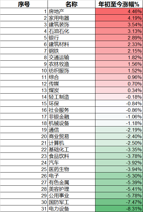 昨天还说是个股的行情、小票的行情,今天个股和小票就开始补跌。昨天唯一的红盘宽基指数国证2000,今天大跌了2.09%。板块上只有交通设施、家用电器、银行等少数板块上涨,军工、半导体等大部分板块下跌。