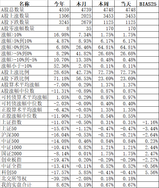 个股也涨的不错,3401只个股上涨,占比71.71%,涨幅中位数1.01%。