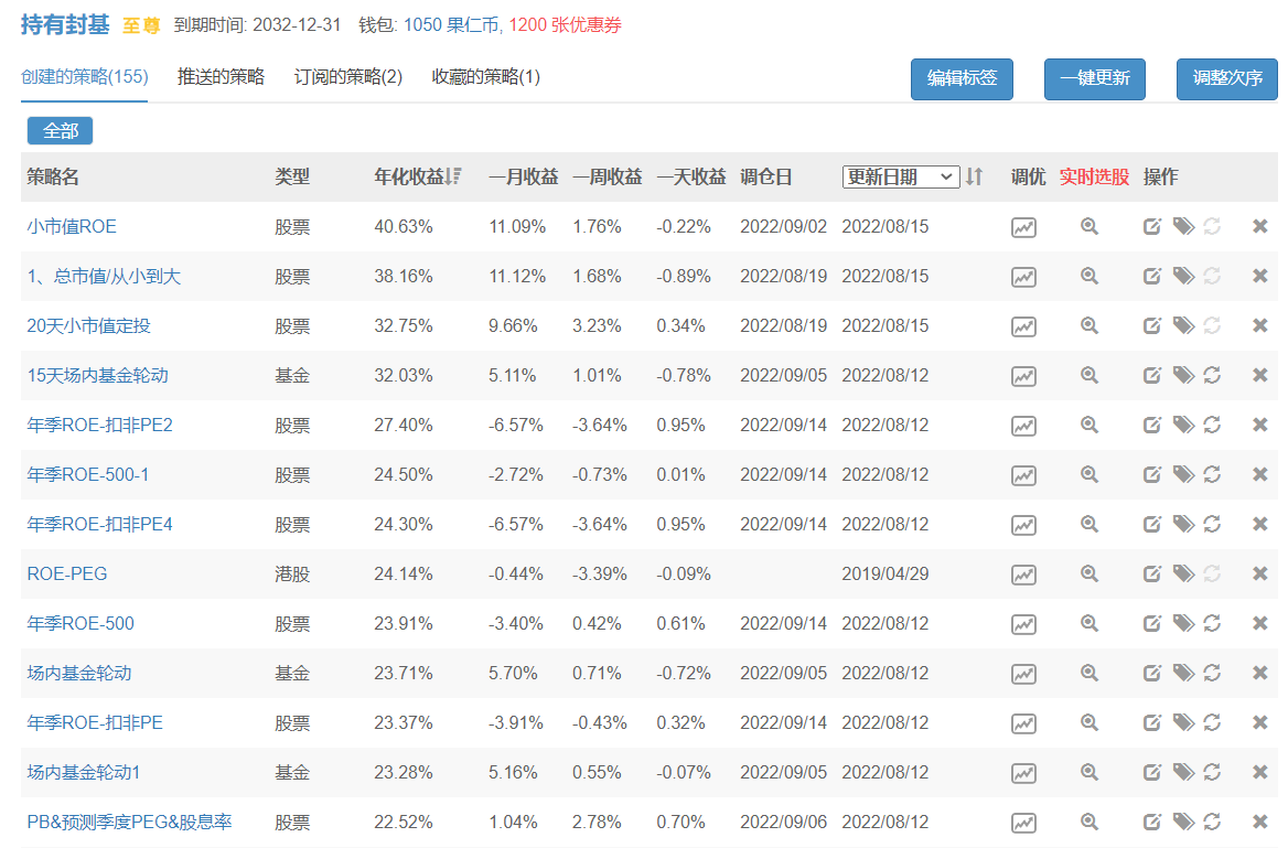 很多人多次问我可转债的下一次切换到什么?我现在真的无法回答。但我有好几个策略都监控着,比如北上资金策略、优质封基策略、优质开基策略等,但最近的表现都远不如可转债,有一个稍好点的策略就是小市值加上财务指标的策略,但也只是监控着,还远远没到切换的时候。