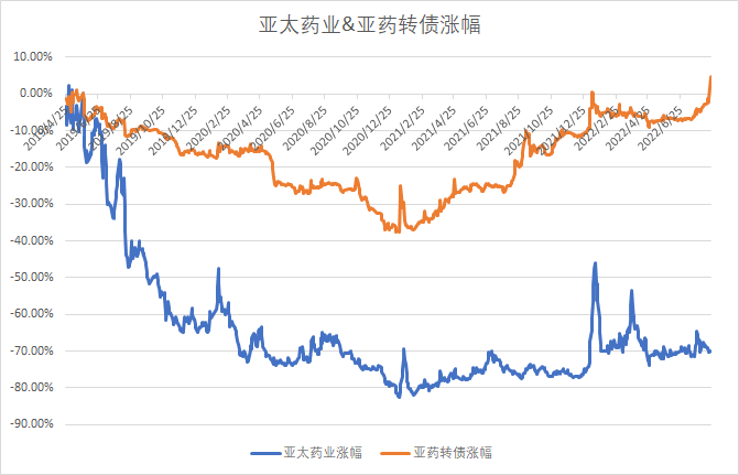 亚太药业在医药股里绝对算烂股,因为从2019年4月24日起到今天的中证医药指数虽然经过大跌,但依然有16.03%的涨幅,而亚药正股则下跌了70.12%。但即使这样的烂股,可转债坚持到最后依然能得到一个不亏的结果,你说可转债的持有人是不是特别有幸福感?