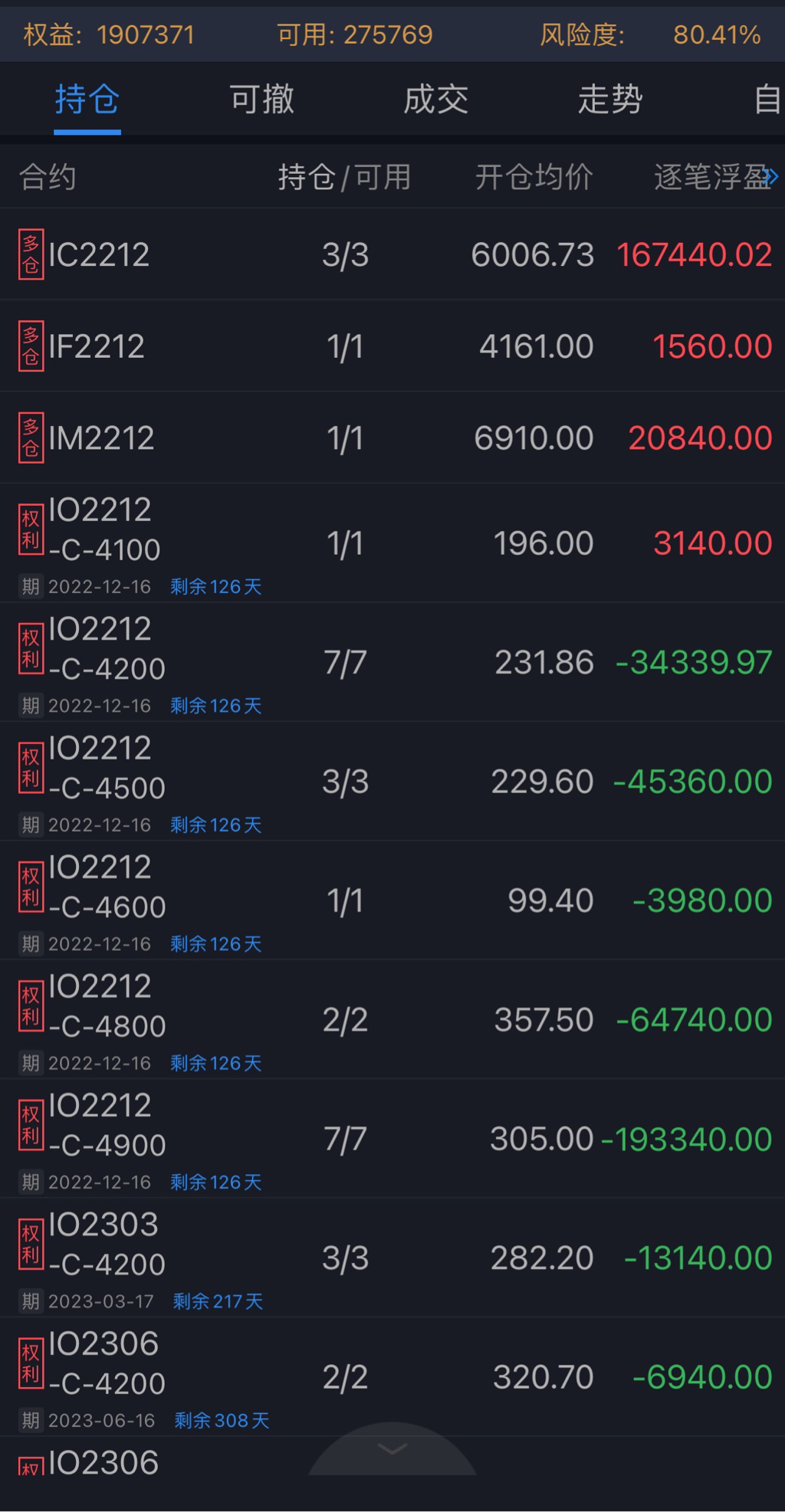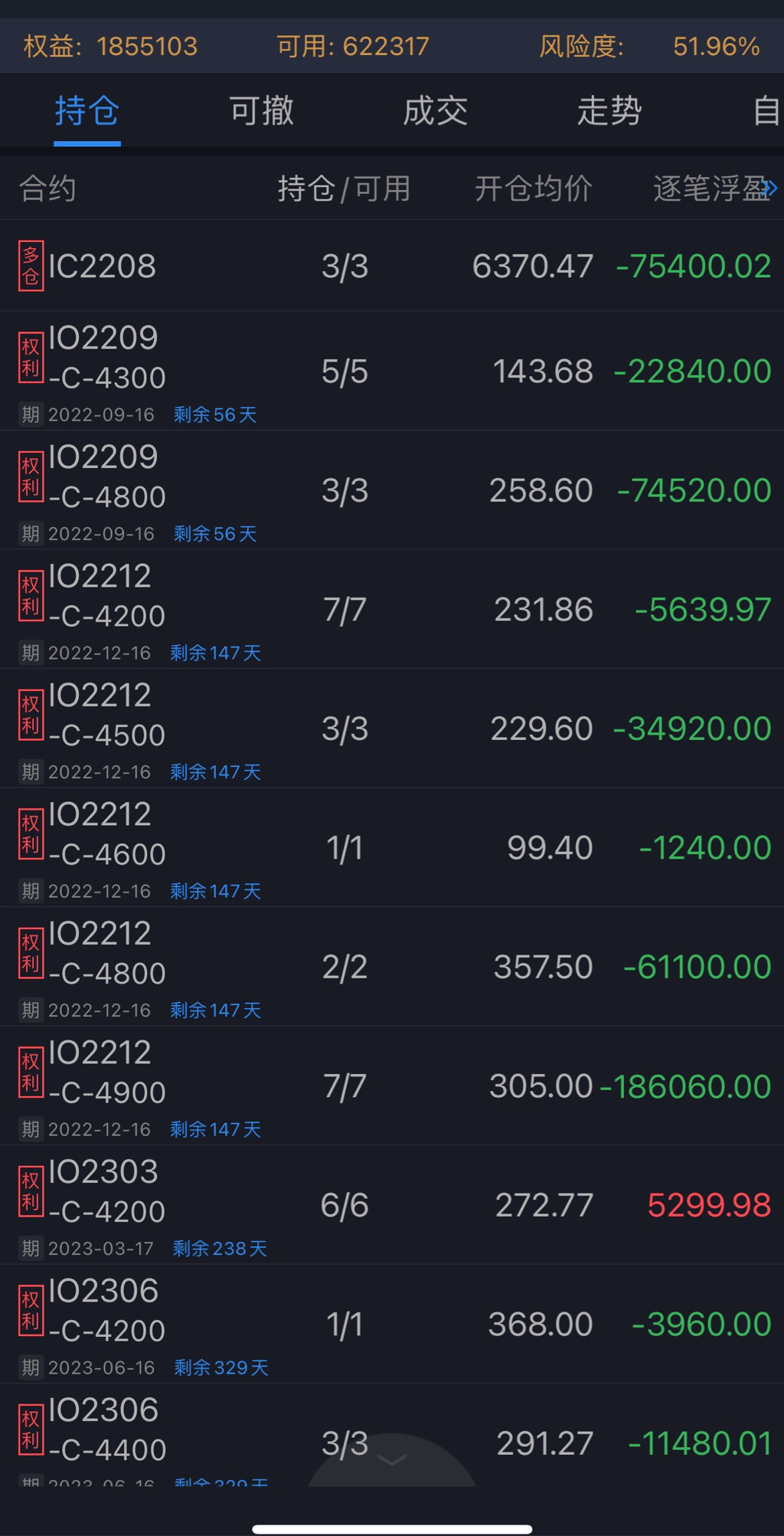 目前手上的持仓是8月沽4300,成本是114,既然被市场教育了,这次我就持有不动,再次立个flag,如果8月交割日300不低于4300,账户将进入盈利状态。