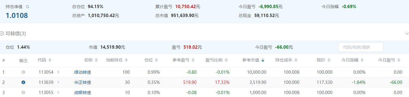 警告:配债风险巨大,如果承受不了回撤可以用一手党替代或干脆不做,切勿模仿本人记录。