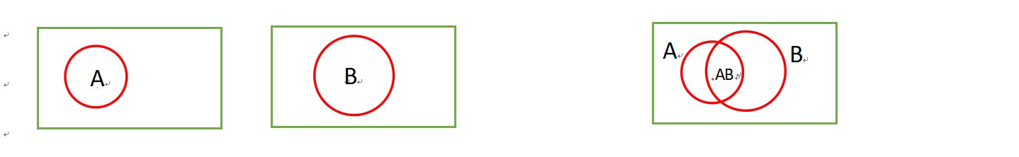 所以,我们生活中往往会凭借常识认定一个事情的独立与否,但数学由于是从生活中抽象出来的,难免就会引出一些特殊情况。我觉得集合里用的“文氏图”是比较利于理解事件的计算和互斥、独立性的。比如: