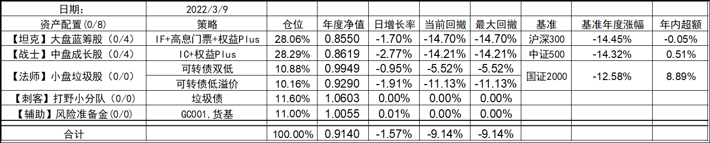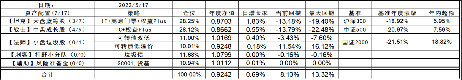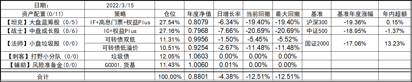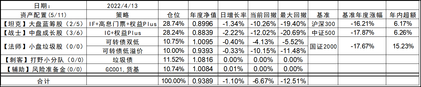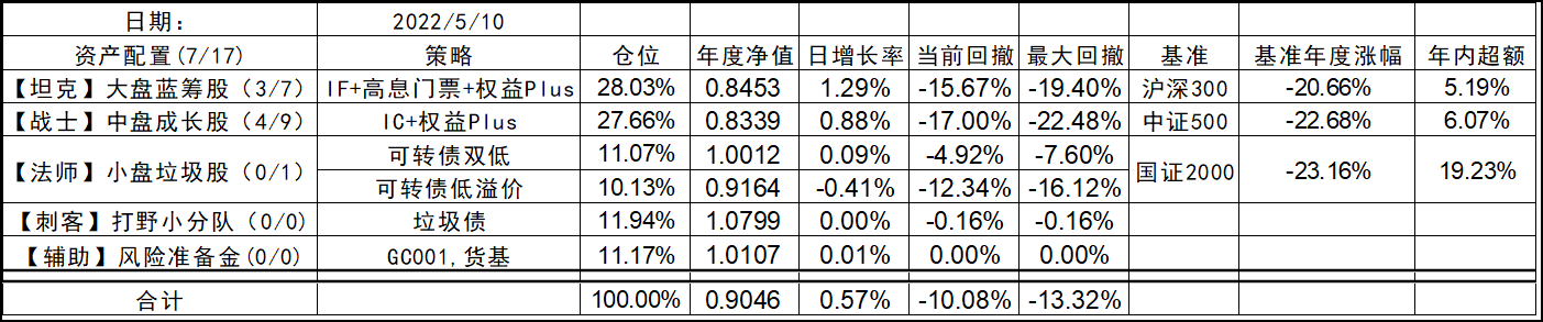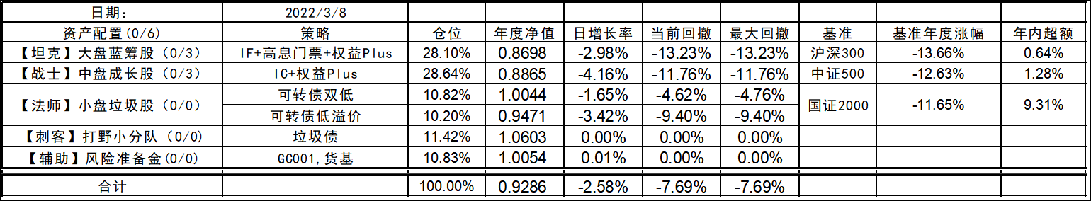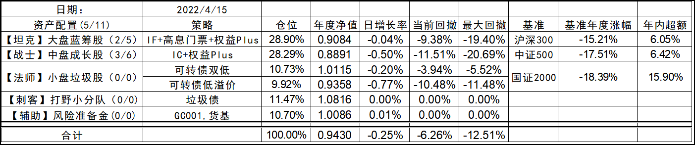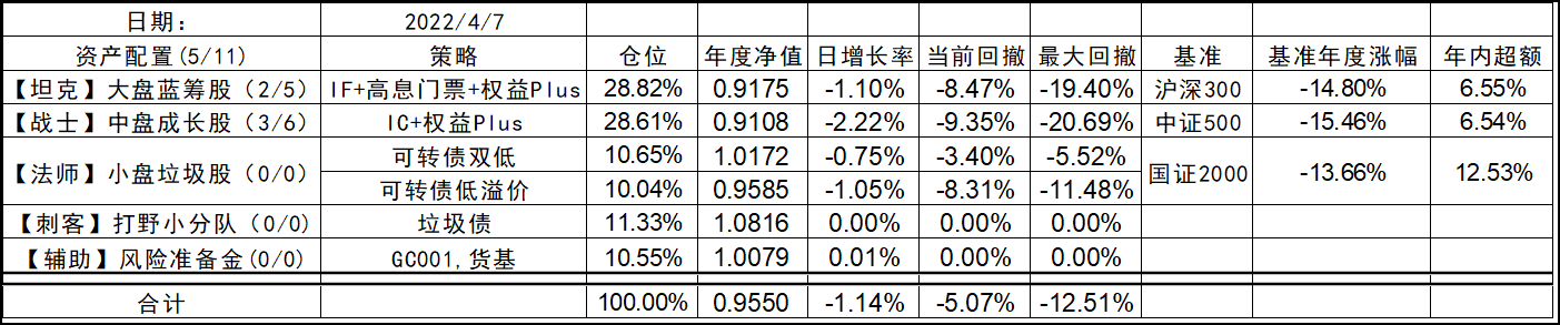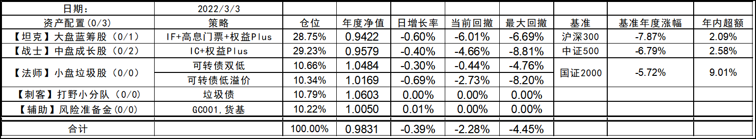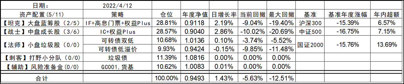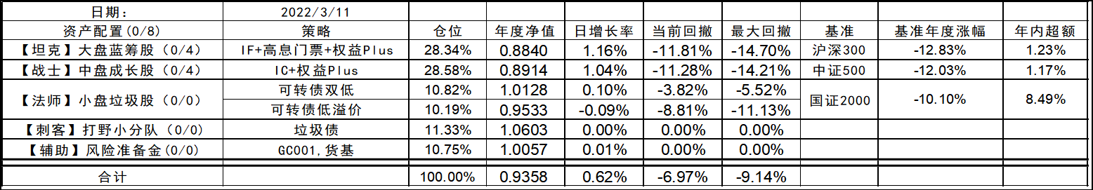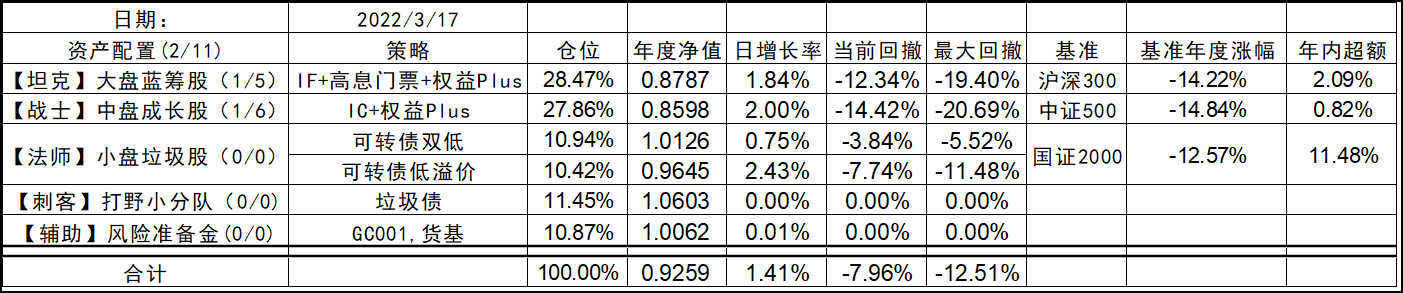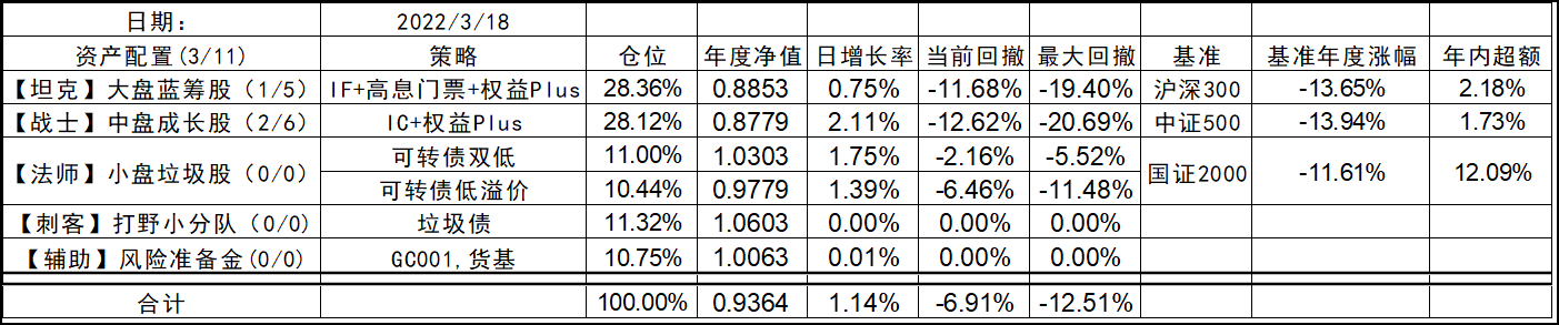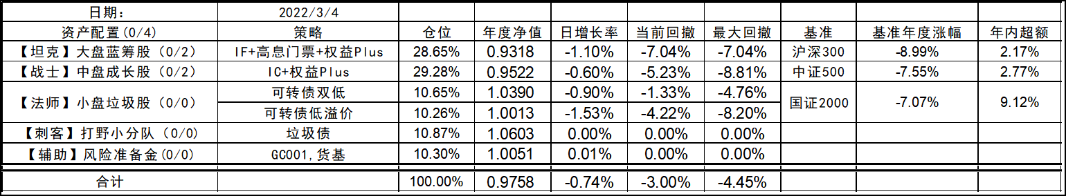 【坦克】,【战士】,【法师】可转债这个月都表现得中规中矩。这里面今年表现最好的仍旧是双低策略具有更好的表现。虽然转债相对国证2000的超额收益有所收敛,大盘和中盘均能有些许超额收益,也是还不错的。另外半伽马薅羊毛策略第一季没有赚到什么钱,希望第二季能早点到来,不可能每次都不赚钱吧。
